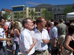 Joël Abbey et Rémi Delatte en conversation avec des jeunes lors de la visite du Ministre Christian Estrosi à l'U.M.P. de Dijon. (2 Juin 2006)